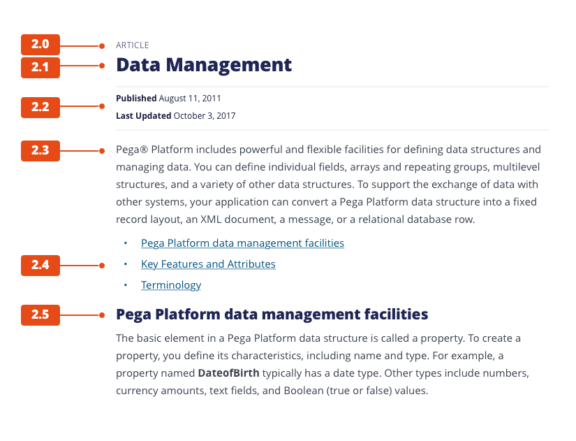 Optimize for content that is easy to scan. Use headings as the primary visual focus, and keep body copy at a consistent size. When writing, consider how bulleted lists can be used to break up long passages of text.