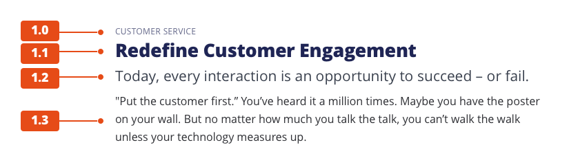 For long form content, page titles always use the XXL Heading. From there, h2 tags and below are sized appropriately to create a strong hierarchy.